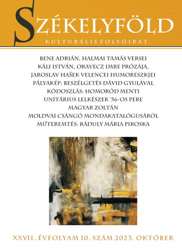 A Székelyföld folyóirat 2023/10. számában verssel jelentkezik Bánfai Zsolt, Bene Adrián, Fellinger Károly, Halmai Tamás és Kristó Tibor. Prózát publikál Benkő Imola Orsolya, F. Bakó Enikő, Káli István, Nádasi Krisztina és Oravecz Imre. Jaroslav Hasek velencei humoreszkjei Száz Pál fordításában olvashatók.
