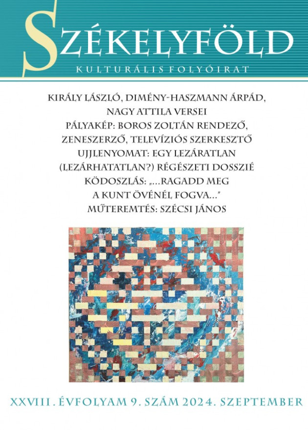 A Székelyföld folyóirat 2024/9. számában verssel jelentkezik Borsodi l. László, Dimény-Haszmann Árpád, Keszthelyi György, Király László és Nagy Attila. Prózát közöl Horváth Szekeres István és Keszeg Tibor, Biró Zsombor Aurél: Mit csináljak, hogy jobban érezd magad? című színművét publikálja.