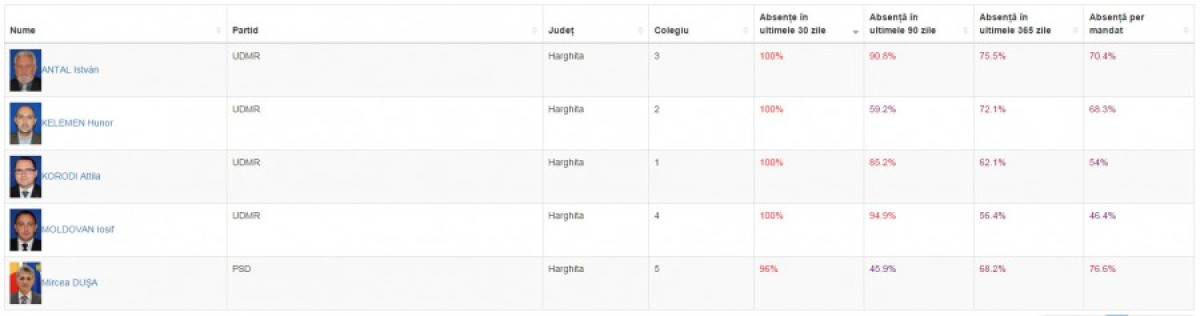 Van egy oldal, a multumesc.ro, amit civilek készítettek és amely automatikusan összegzi a parlamenti képviselők munkahelyi jelenlétét. Úgy működik, hogy a képviselőház honlapján hozzáférhető nyilvános adatok alapján megmutatja, hogy a képviselők jelen voltak-e az alsóházi szavazásokon. Konkrétan azt összesíti, hogy egy-egy képviselő a szavazásokon megnyilvánult-e igennel vagy nemmel, illetve tartózkodással, vagy nem. Ez utóbbi nyilván szigorú értelemben nem jelenti azt, hogy nem voltak jelen, hiszen egy képviselő ott lehet az ülésen anélkül is, hogy valahogyan szavazna, de gyakorlatilag mégis csak azt mutatja: a honatya nem volt jelen.