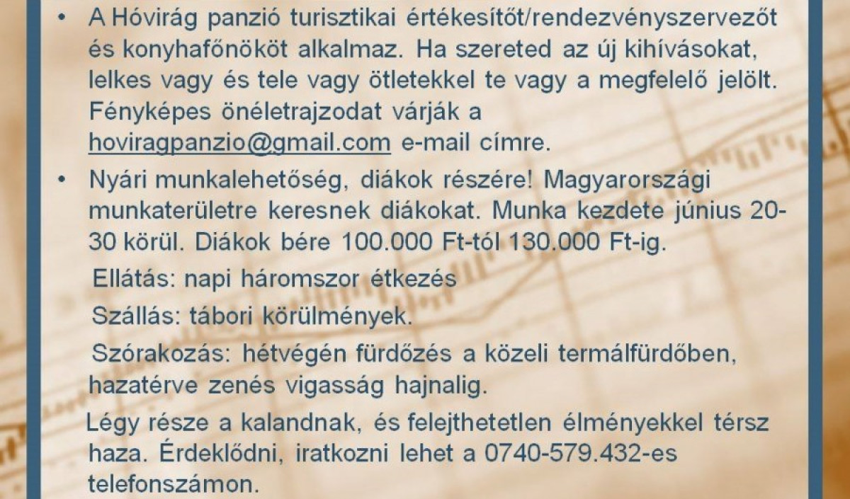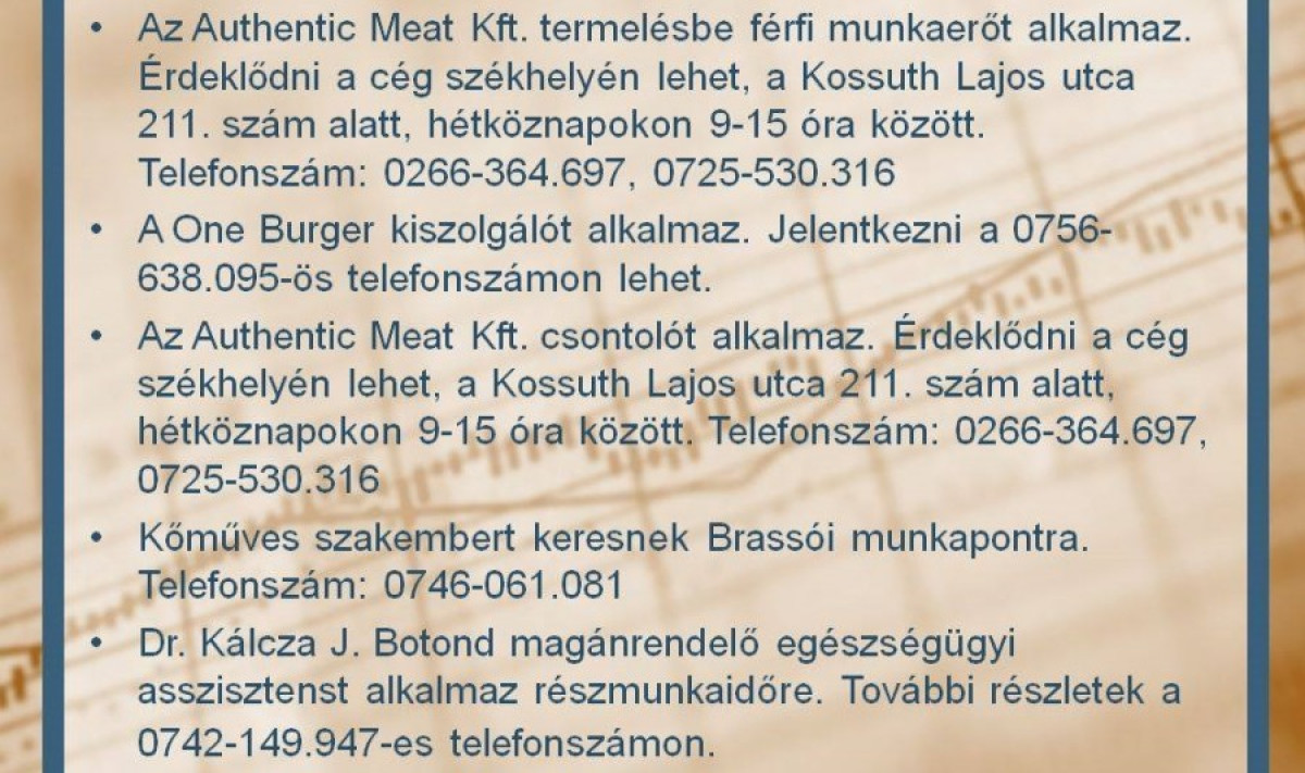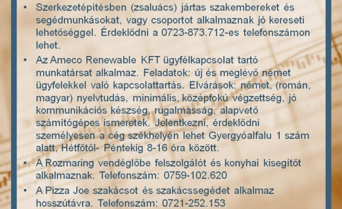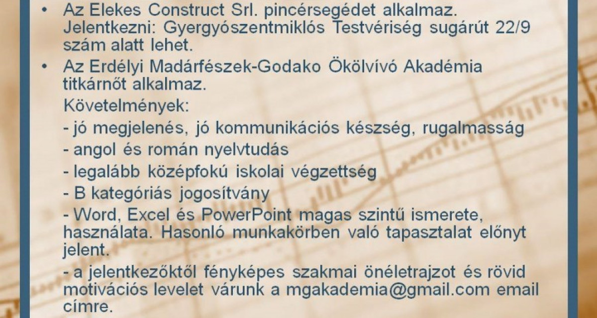 Állásajánlatok a Gyergyói-medencében