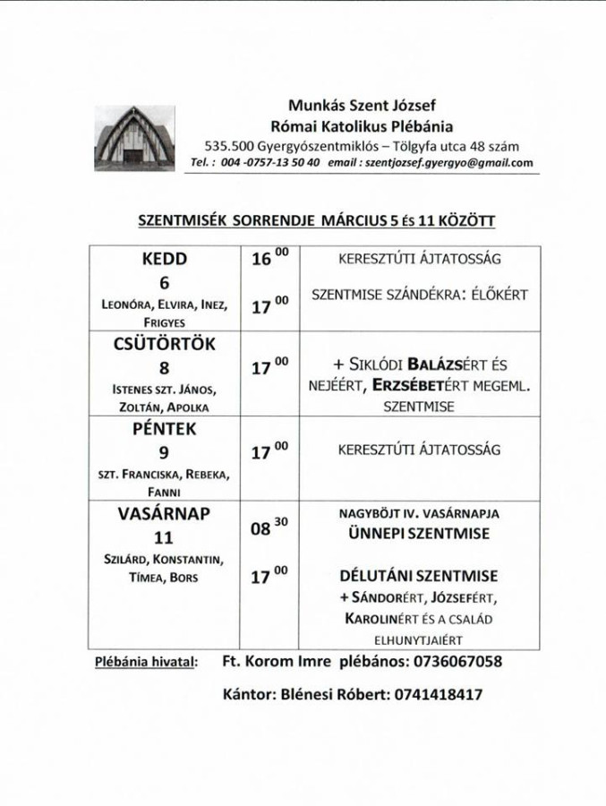 Miserend március 5–11. között: