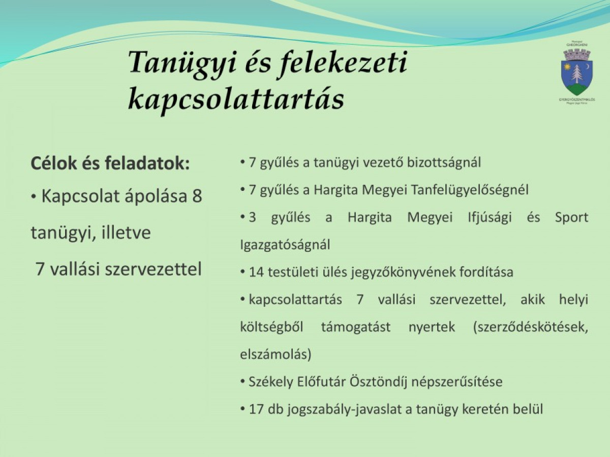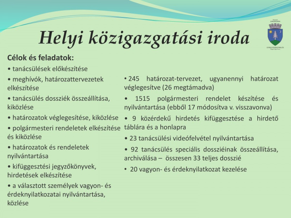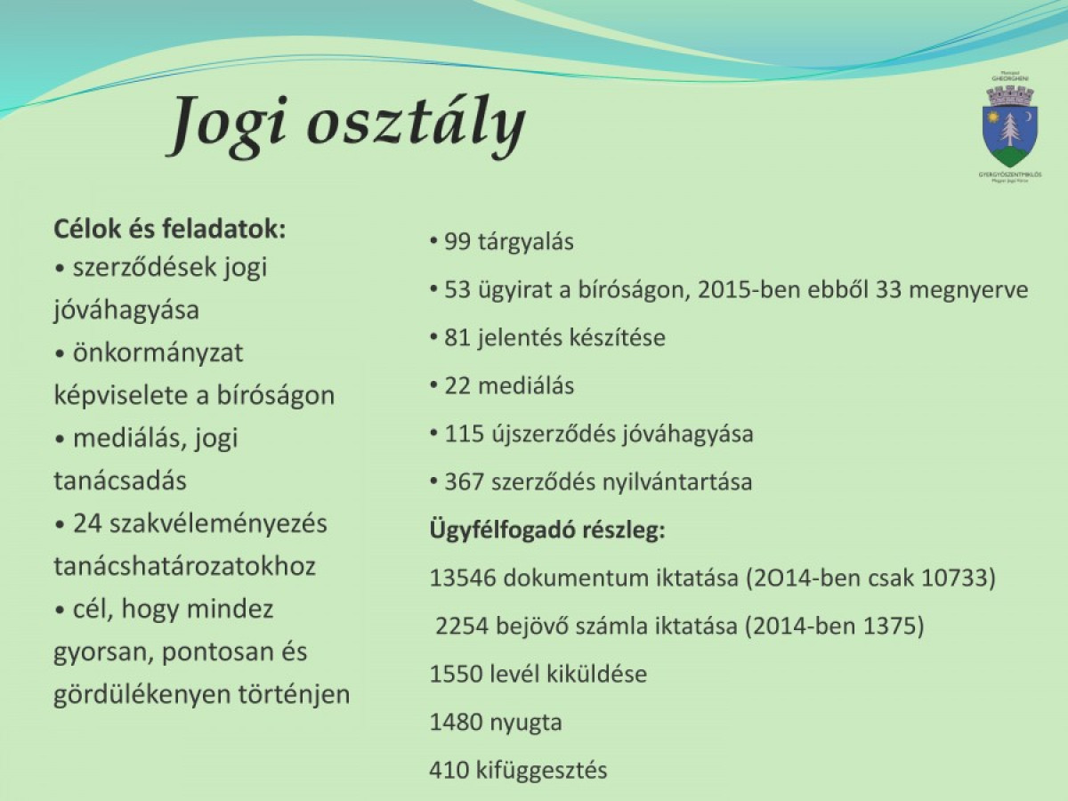 Gyergyószentmiklós megyei jogú város polgármester-helyettesének a 2015-ös évre vonatkozó tevékenységi beszámolója