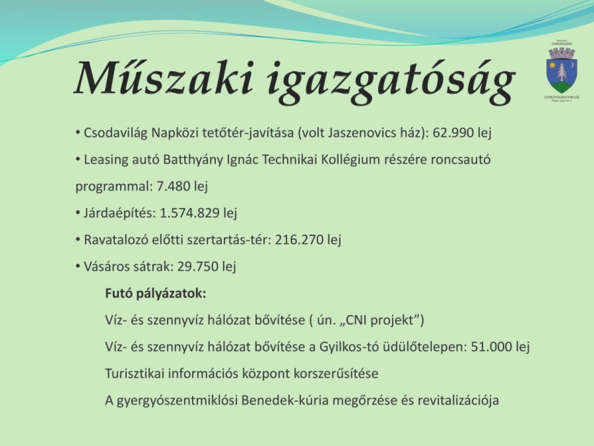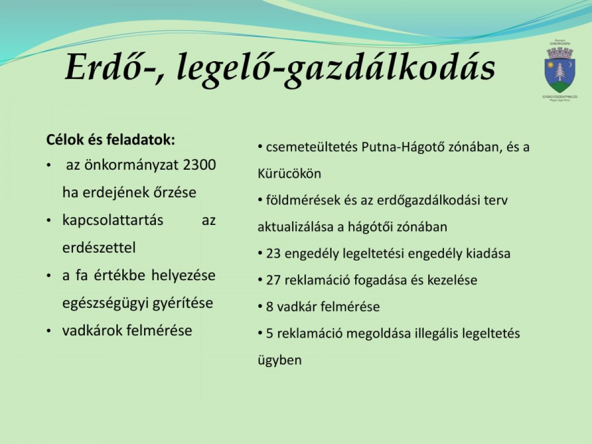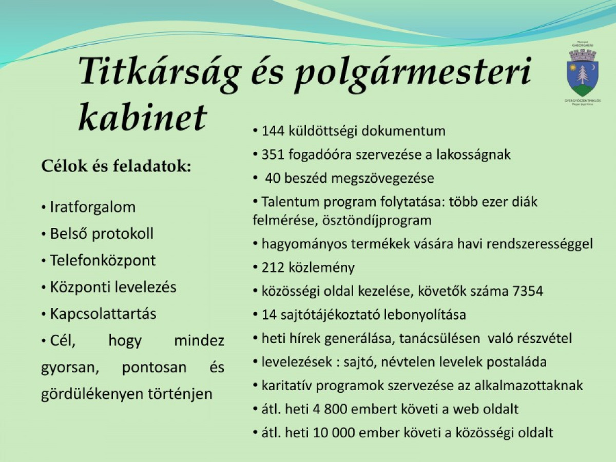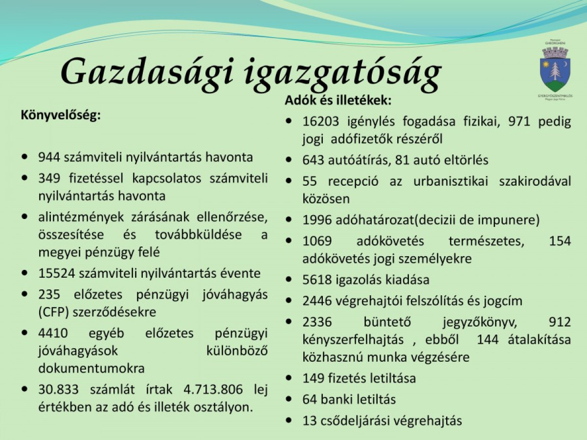Gyergyószentmiklós megyei jogú város polgármester-helyettesének a 2015-ös évre vonatkozó tevékenységi beszámolója
