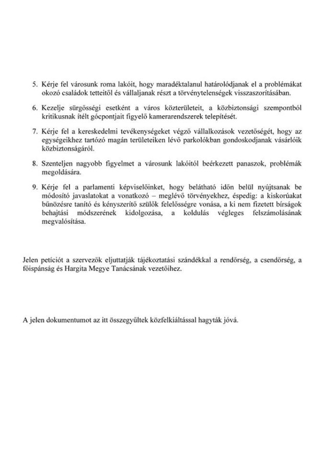 Az átadott, és a jelen lévők által egyhangúlag elfogadott petíció mindennapjaink jobbá tételéhez fogalmazott meg kéréseket és javaslatokat. Mindazok, akik egy közös akaratot fejeztek ki a tegnap, városunk élhetőbbé alakíthatóságához nyújtottak segítséget. Köszönet érte.