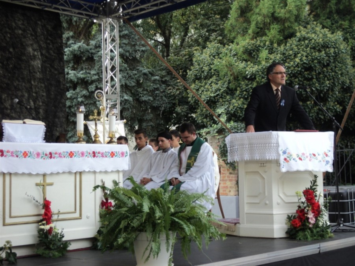 A szentmise főcelebránsa és szónoka, Jakubinyi György gyulafehérvári érsekkel együtt koncelebrált Palánki Ferenc debreceni megyéspüspök, Kocsis Fülöp görögkatolikus érsek-metropolita, Vencser László morálteológus, Horváth István gyulafehérvári kanonok, Szőcs Csaba, a kolozsvári Verbum Kiadó igazgatója és mások mellett Fejér Lajos kilyénfalvi, Juhász Imre újfehértói-hajdúnánási plébánosok, illetve Kerekes László helyben szolgáló lelkész. Jakubinyi érsek köszönetet mondott Buczkó József néprajzkutatónak azért, hogy feltárta és „nagyszerű könyvében” feldolgozta a székely menekülés történetét. Szentbeszédében az érsek úr hangsúlyozta: a mai hajdúnánásiak ősei gyakorolták a felebaráti szeretet nagy parancsát, amikor befogadták a székely menekültek. Befejezésként idézte a székely ősöknek a csíksomlyói Salvator-kápolna előtt álló kőkeresztre vésett imáját, amely, mint mondta, a mi imánk is: „Isten, tarts meg minket őseink hitében és erényeiben.”