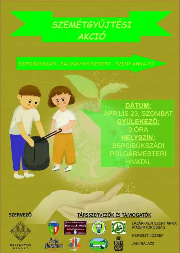 A Bálványos Resort kezdeményezésére 2022. április 23-án, szombaton, a Föld Napja alkalmából immár második alkalommal szemétgyűjtési akcióra kerül sor. A nagytakarítást a Sepsibükszád-Bálványos Resort útvonalon, illetve idéntől kiterjesztve a Szent Anna-tóig végezzük el.
