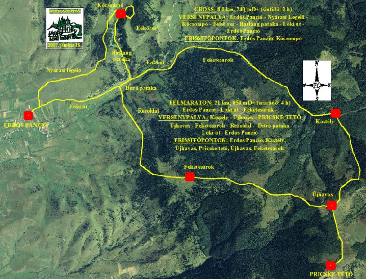 A START és a CÉL az ERDŐS PANZIÓ terén található.
