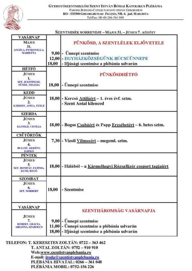 Heti hirdetés és miserend