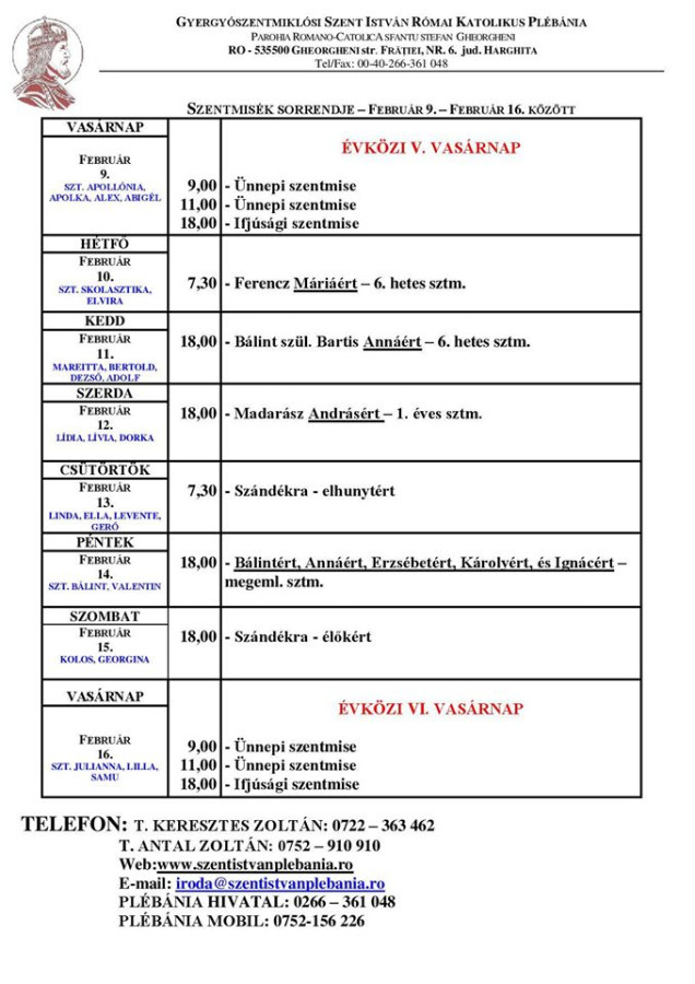 Hirdetések és miserend
