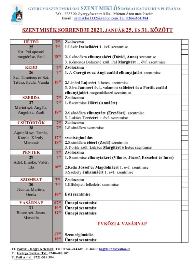 • Elkezdődtek a plébániai hittanórák és a bérmálási felkészítő a kifüggesztett beosztások szerint. Kérjük a szülőket, biztassák gyermekeiket a hittanórákon való részvételre!