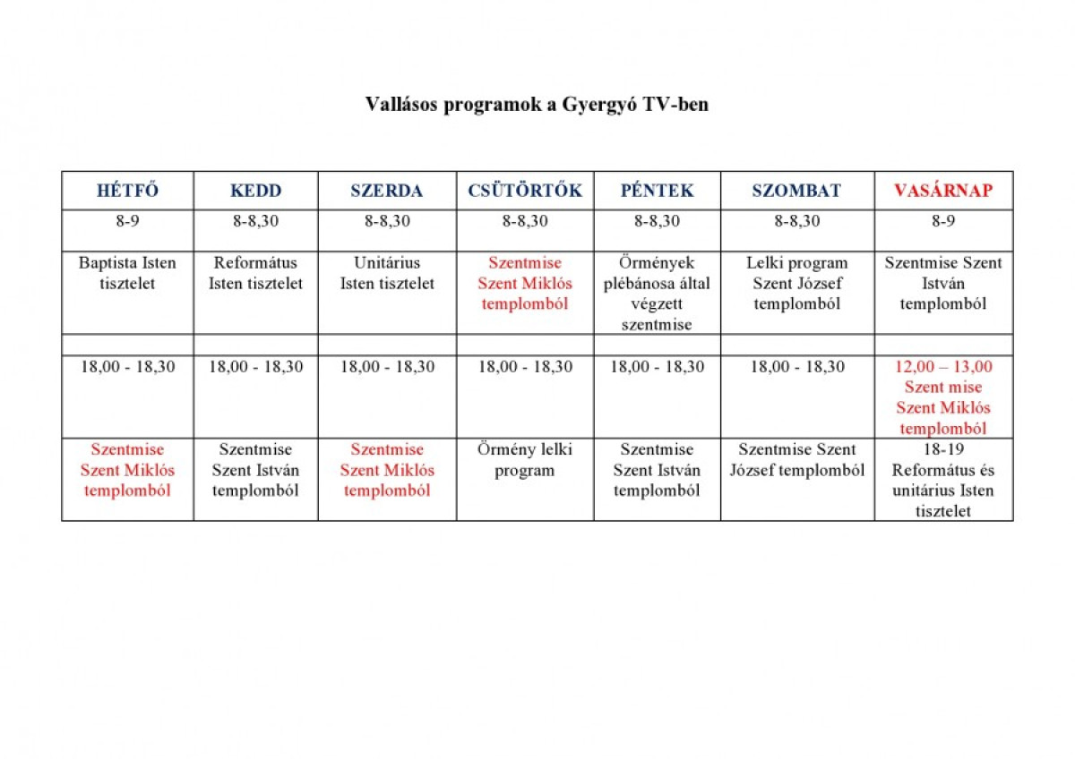 SZENTMISÉK SORRENDJE 2020. ÁPRILIS 13–19. KÖZÖTT