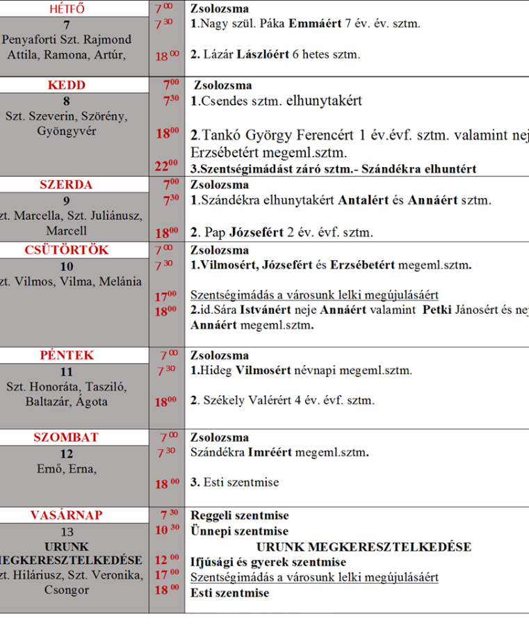 • Szeretettel köszöntjük azokat, akik a jövő héten születés, névnapjukat vagy házassági évfordulójukat ünneplik. A jó Isten áldását és segítségét kérjük számukra