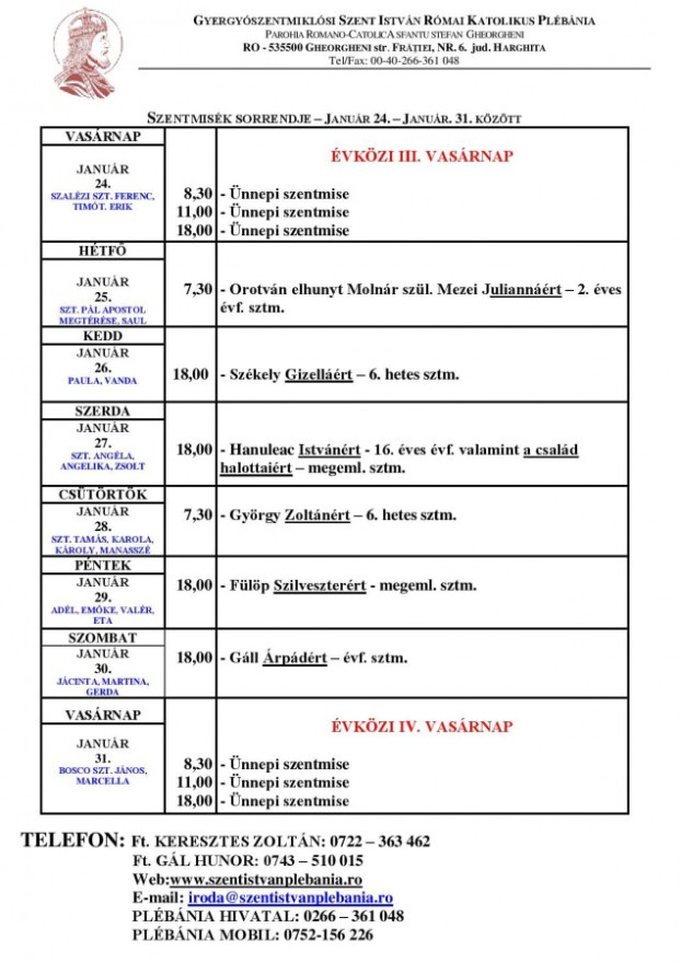 • Keresztény sajtó kapható a sekrestyében, vagy a plébánia irodájában.