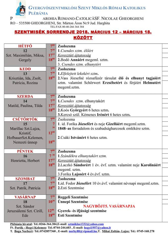 • Megjelent a 2017-es falinaptár, 3 lej/db, amit megvásárolhatnak a plébánia irodáján.