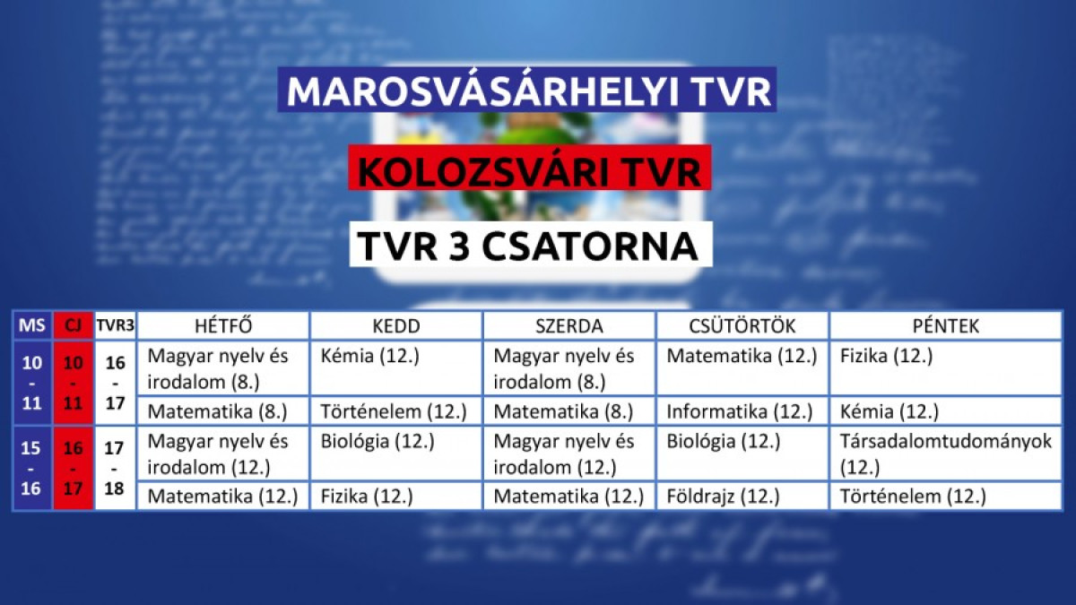 A nyolcadikos diákok számára magyar, illetve matematika órákat közvetít a román televízió, a tizenkettedikeseknek pedig magyar, matematika, biológia, fizika, kémia, társadalomtudomány és történelemórákat tartanak az adások keretében.