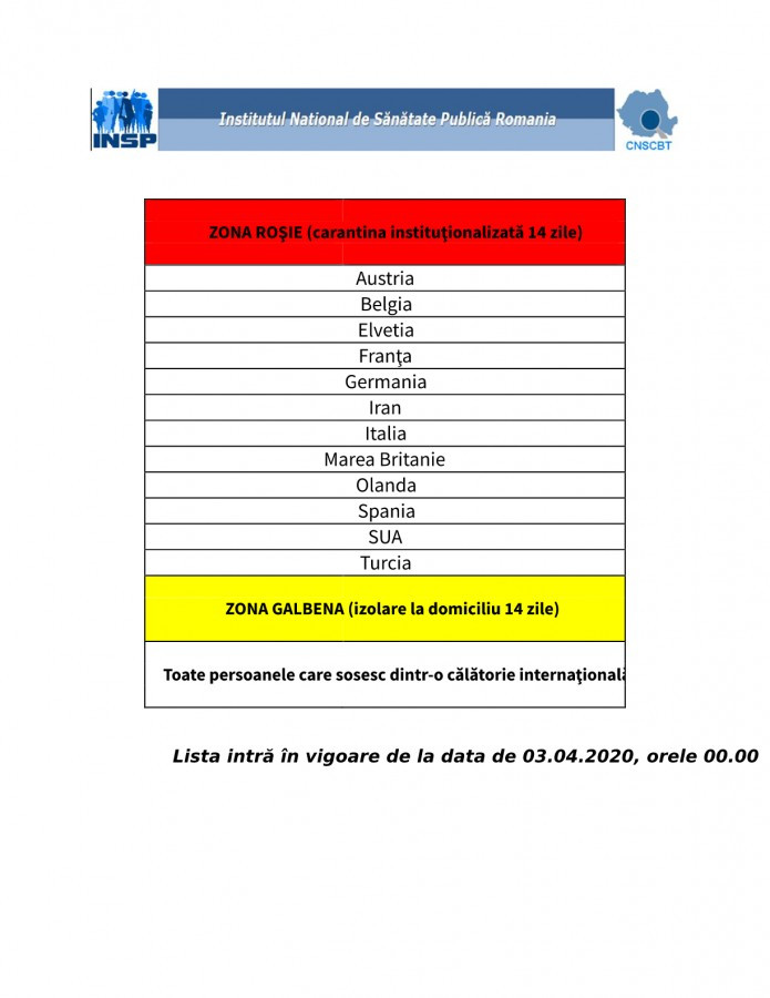 Az INSP rendelkezése szerint az összes többi ország ‘sárga övezetnek’ számít, tehát minden román állampolgárnak, aki a fentiektől különböző országból tér haza, 14 napos otthoni elkülönítésbe kell vonulnia.