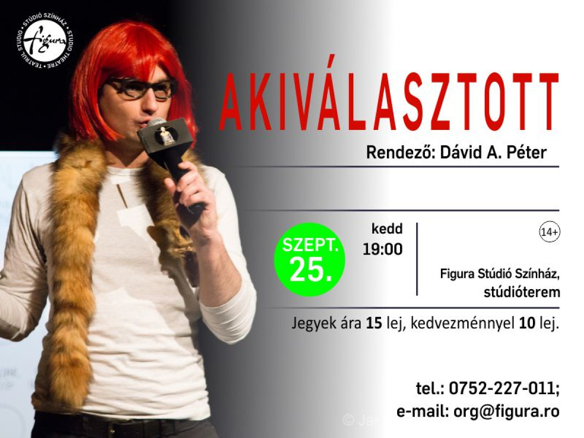 Szeptember 25-én, kedden este 7 órától a Figura stúdiótermében új szereposztással tekinthető meg Akiválasztott című előadás. A produkcióban Pignitzky Gellért helyett az előadás rendezője, Dávid A. Péter látható.