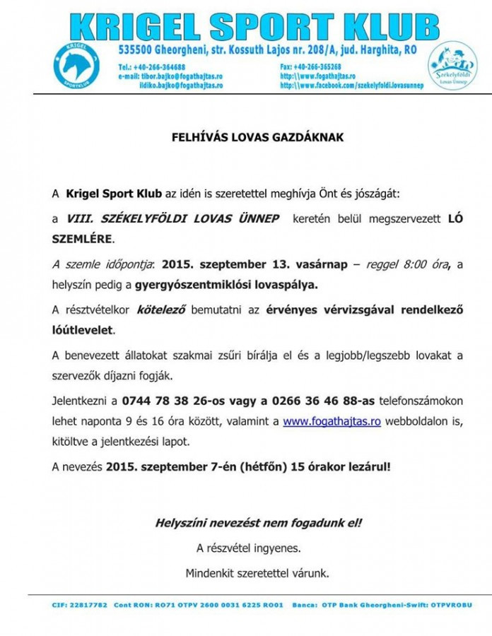az esemény élő internetes közvetítése az erdelyilovas.ro erdélyi magyar lovas portál jóvoltából,
