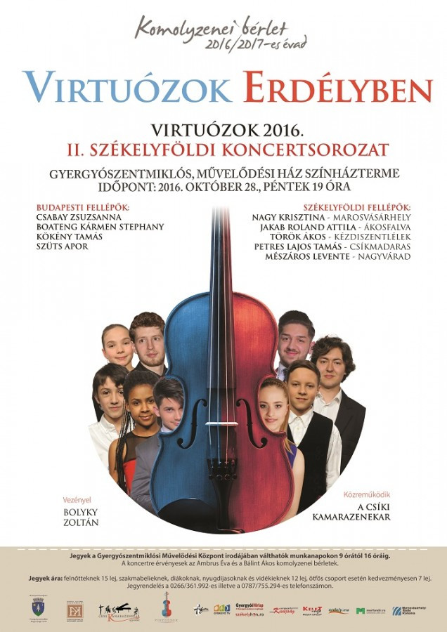 Október 28-án, pénteken Gyergyószentmiklóson, a művelődési ház színháztermében kerül sor a Virtuózok koncertjére