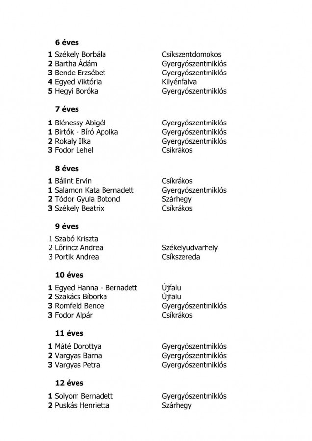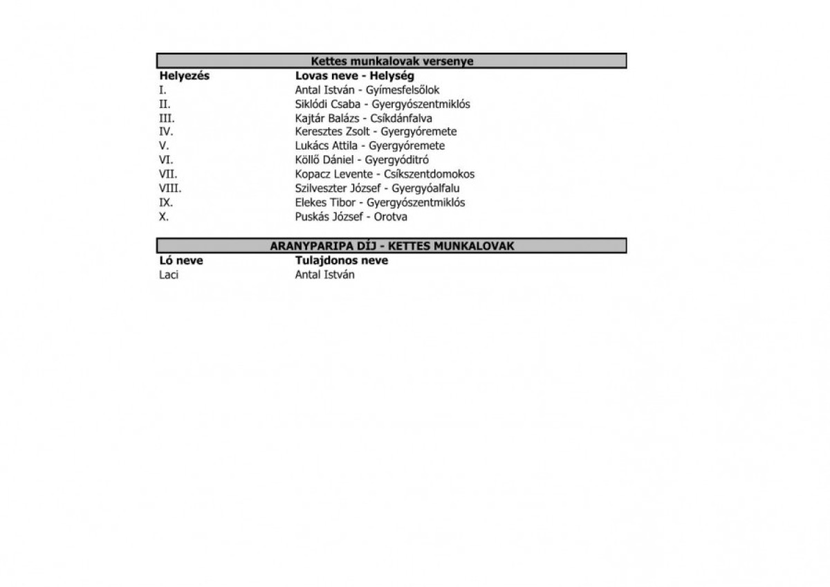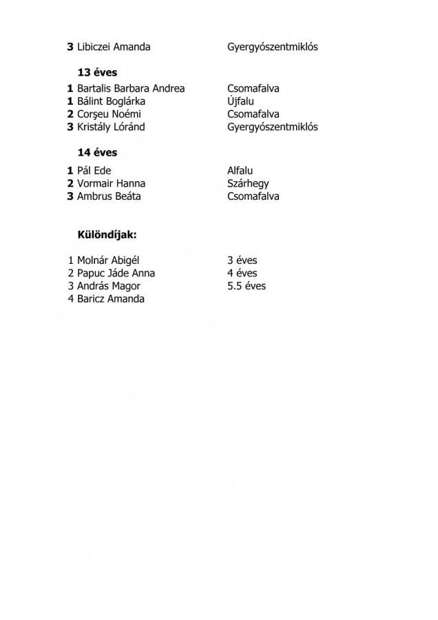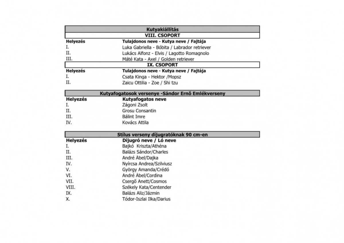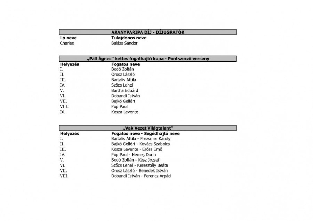 Tombolanyertesek, eredménylisták, támogatók