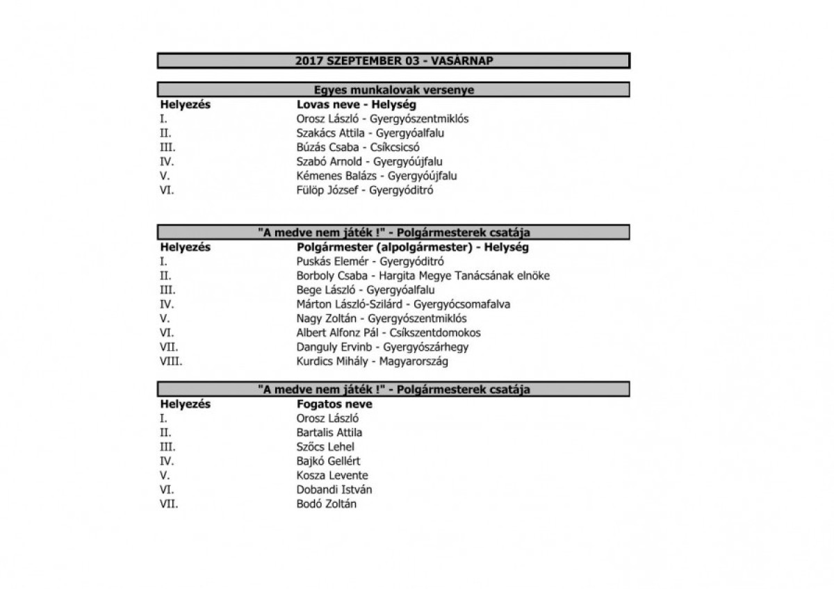 A csendőrség, a helyi rendőrség, a vöröskereszt és a mentőszolgálat embereinek a rendezvényen tanúsított hozzáállását csak dicséret illeti.