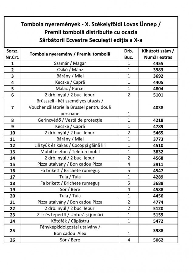 Elismerésünket fejezzük ki a nagyszámú nézőtábornak, köszönjük a pozitív visszajelzéseiket és az aktív részvételüket. Az időjárás ősziesre fordulásának eredményeként az elmaradt tombolahúzást közjegyző jelenlétében megtartottuk, a húzás eredményeit – a nyerőszámokat, a sajtó és az internet segítségével nyilvánosságra hozzuk.