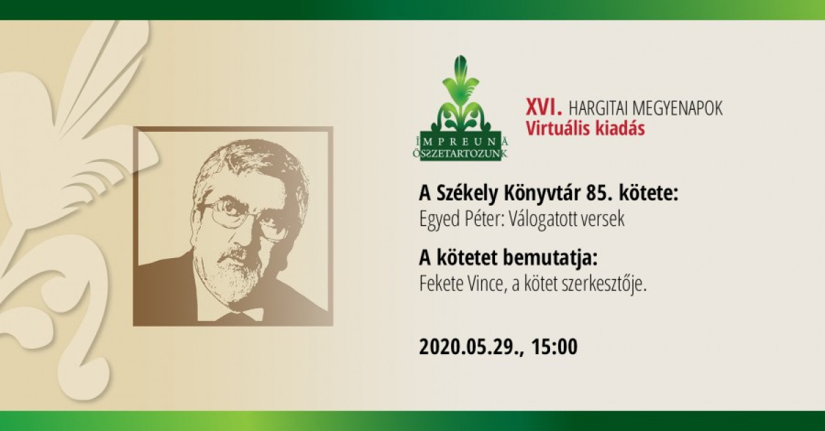 15.00 – A Székely Könyvtár 85. kötete: Egyed Péter: Válogatott versek