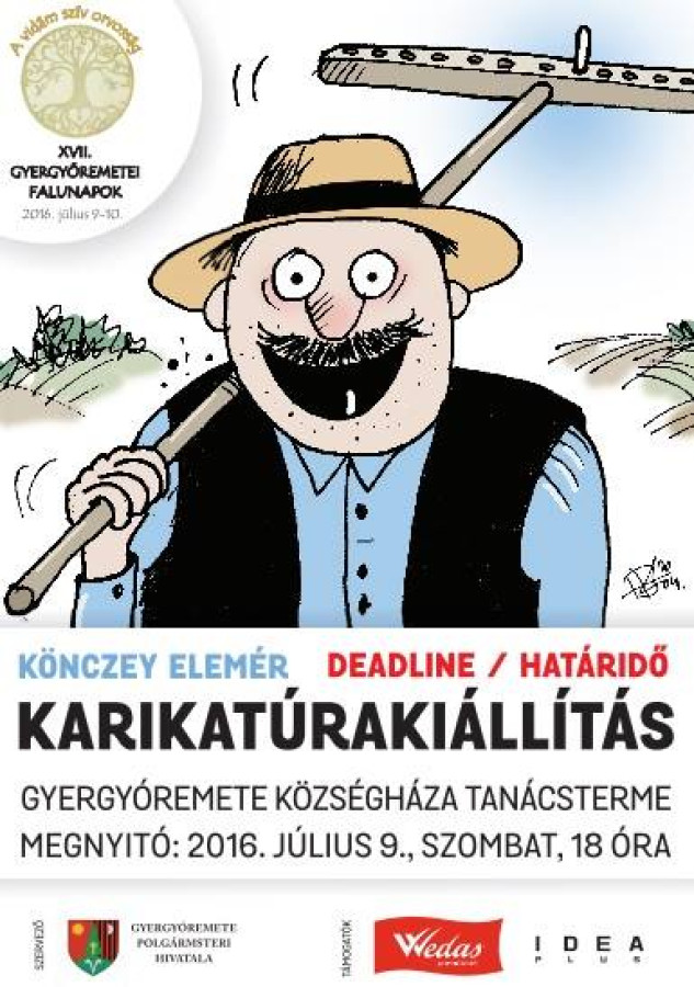18:00 – HATÁRIDŐ címmel KÖNCZEY ELEMÉR grafikus karikatúra kiállítása – Községháza Tanácsterme.